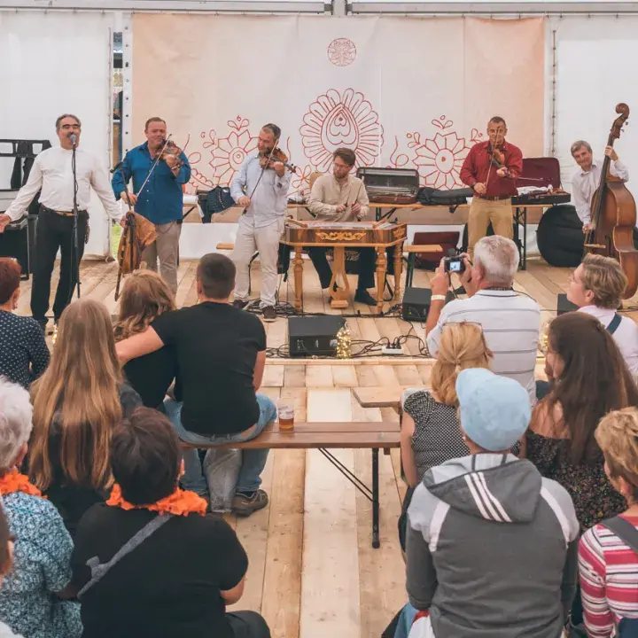 A Méra Világzenei Csűrfesztiválon három kontinens zenészei lépnek fel egy falusi porta csűrszínpadán.