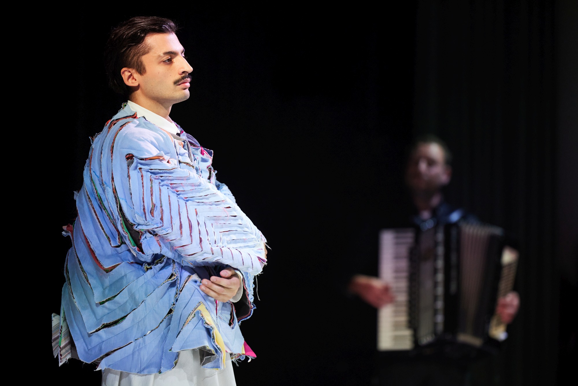Az előadás olyan kérdéseket jár körbe, mint például hogyan tud a hagyományos falun viselt hajviselet motívummá válni egy színpadi ruhán, illetve egy autentikus népviseletből hogyan formálódik színpadi jelmez?