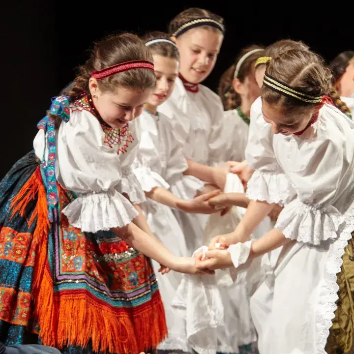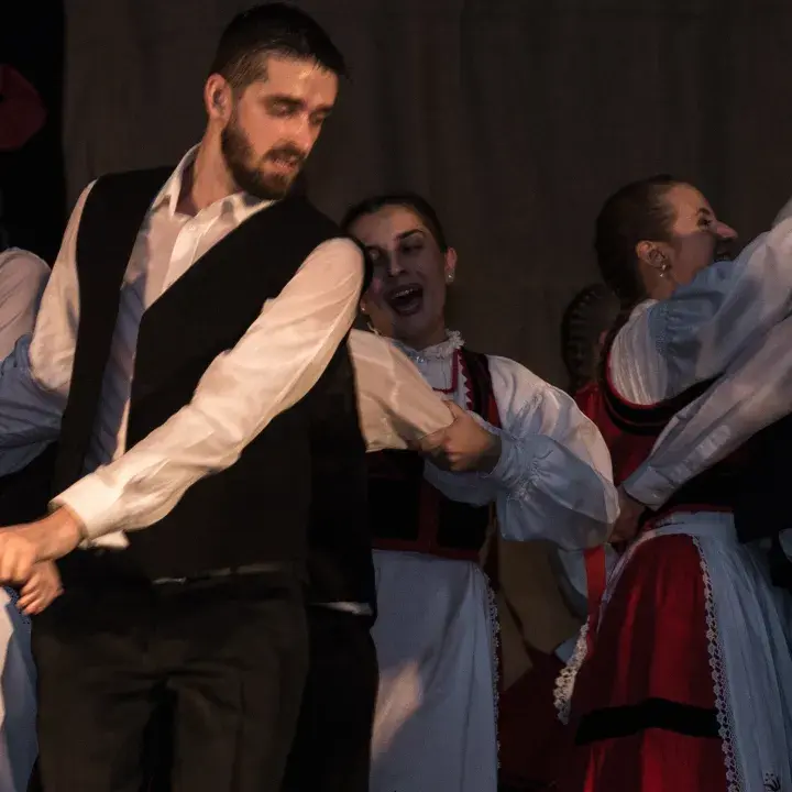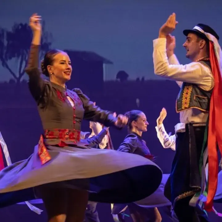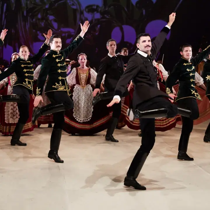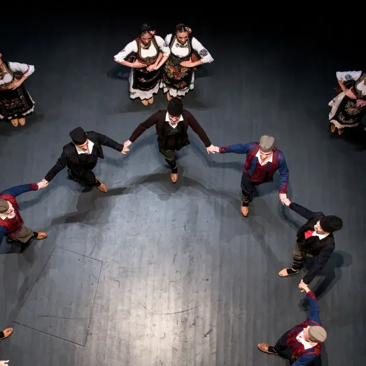 A Magyar Állami Népi Együttes és a KOLO Szerb Nemzeti Néptánc- és Énekegyüttes közös műsora.